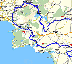 - Pniel - Helshoogte Pass - Stellenbosch - Somerset West.