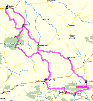 Albert or Calitzdorp. It ventures off from Laingsburg