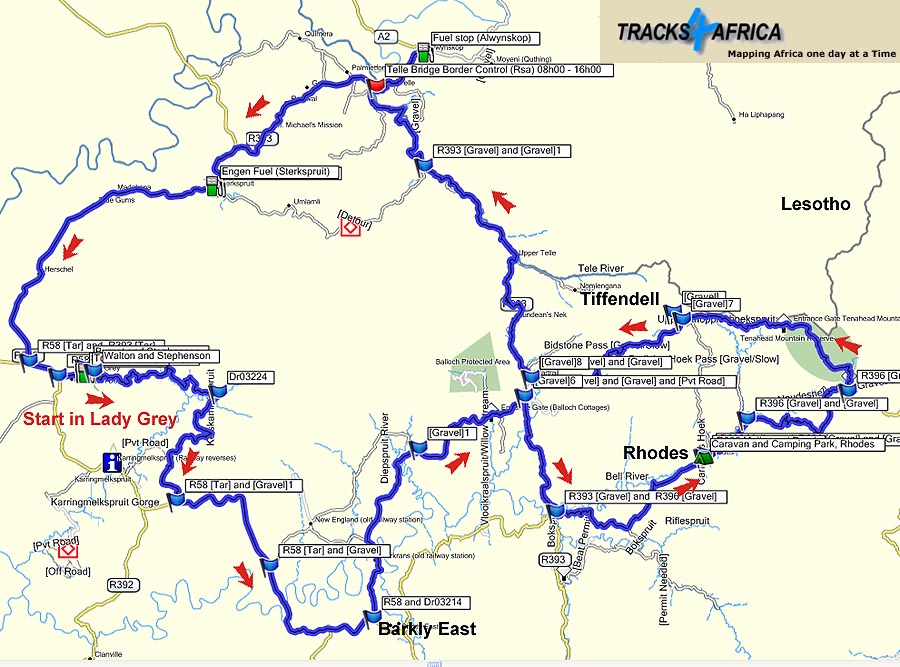 Lesotho Boarder and Tiffendell Route- 404km - 2 Days